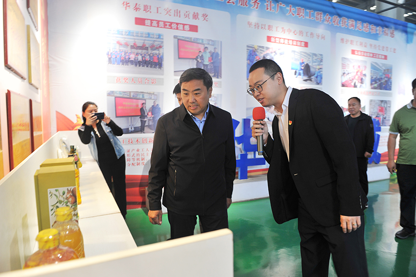 安陽(yáng)市總工會(huì)領(lǐng)導(dǎo)蒞臨華泰智能裝備集團(tuán)調(diào)研 5月30日上午,市總工會(huì)黨組副書記、常務(wù)副主席孫用璽,市總工會(huì)黨組成員、副主席趙亞飛,市總工會(huì)組織部部長(zhǎng)李朝文,市總工會(huì)勞動(dòng)部部長(zhǎng)程喬兵蒞臨河南華泰智能裝備集團(tuán)參觀調(diào)研?;h縣委副書記吳瑞軍,縣政協(xié)副主席,縣總工會(huì)黨組書記、主席鄭進(jìn)武,縣總工會(huì)黨組副書記、常務(wù)副主席李莉,縣總工會(huì)黨組成員副主席史朝陽(yáng),縣總工會(huì)組織部負(fù)責(zé)人樊振慶,縣總工會(huì)勞動(dòng)部負(fù)責(zé)人魏肖,河南省人大代表、中國(guó)糧油學(xué)會(huì)油脂分會(huì)副會(huì)長(zhǎng)、華泰智能裝備集團(tuán)董事長(zhǎng)閆子鵬、華泰智能裝備集團(tuán)黨委書記、總經(jīng)理閆博等陪同調(diào)研。